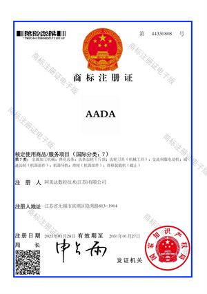 • AADA商標注冊證